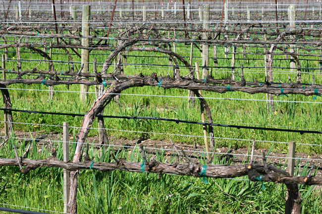 Meanwhile, Doug Fletcher was suggesting that Chimney Rock actually look at winegrowing differently. Eschewing intervention in the winery as merely trying to fix a problem originally caused in the vineyard, Doug felt that both proper berry size and ripeness need to have been determined by verasion, or you're stuck trying to fix things retroactively in the winery. Doug looked at cell division versus cell enlargement within the fruit. He wanted to keep the cell division down in order to keep the berry size small, by encouraging the vine to stop growth early, and "set" the berry size. Doug pointed out that his goal was to get the same crop - both weight and berry size - from each vine. This meant that he needed to "tune" not only each block, but also tune each row and each vine to its own particular need. To do this, he looked more closely at things like soil and canopy. In different soil conditions, the vine's need changes - requiring more or different spacing, and/or pruning to maintain the acceptable vine balance from row to row, and section to section. While soil, or terroir, is indeed important, Doug has found that it is not the be-all end-all of wine growing. Rather, from his observation (and tasting), it appears that achieving "vine balance" is actually the major factor in determining the final quality of a wine. In seeking a balance in the grapes, Doug felt the ratio of fruit weight to leaf area should be constant. This meant re-examining canopy maintenance. Canopy leaves need to do two things well - convert water into sugar in the grapes, and shade the fruit from the damaging effects of the sun. How much canopy is ideal? From Doug's experience, only enough to provide shade for the fruit - or about one leaf per cluster. Too many leaves merely divert effort away from proper fruit ripening. This can get dicey, of course. Too little canopy for the fruit, is nearly as bad as too much. What was needed was a way to ideally expose all of the fruit equally.